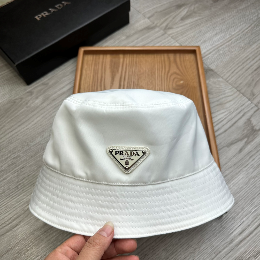 Prada Flat Top Classic Triangle Labeled Iron Fisherman's Hat Sunhat (Replica)