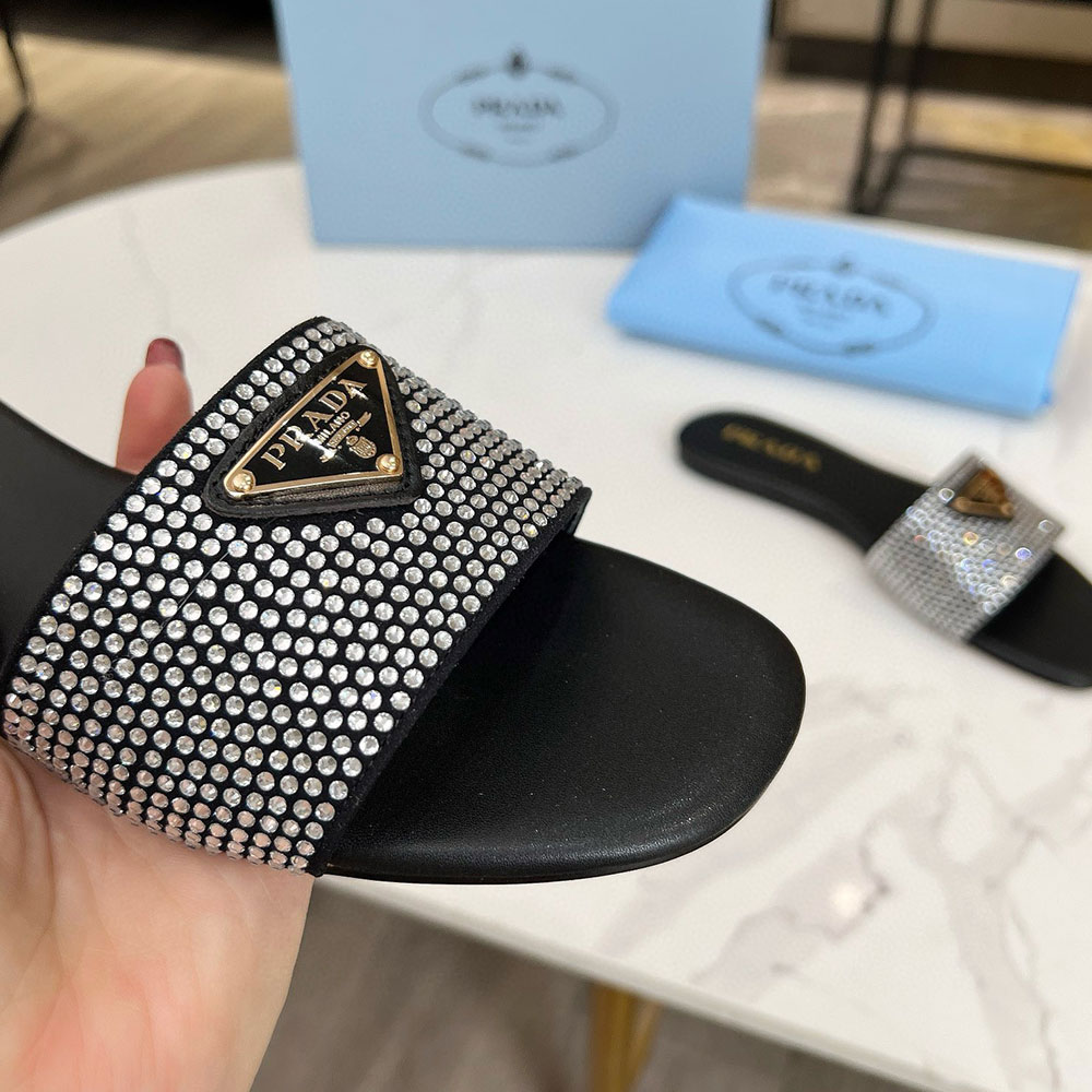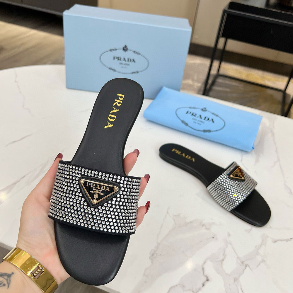 Prada Band Drill Comfortable Flat Sandals Slide (Replica)