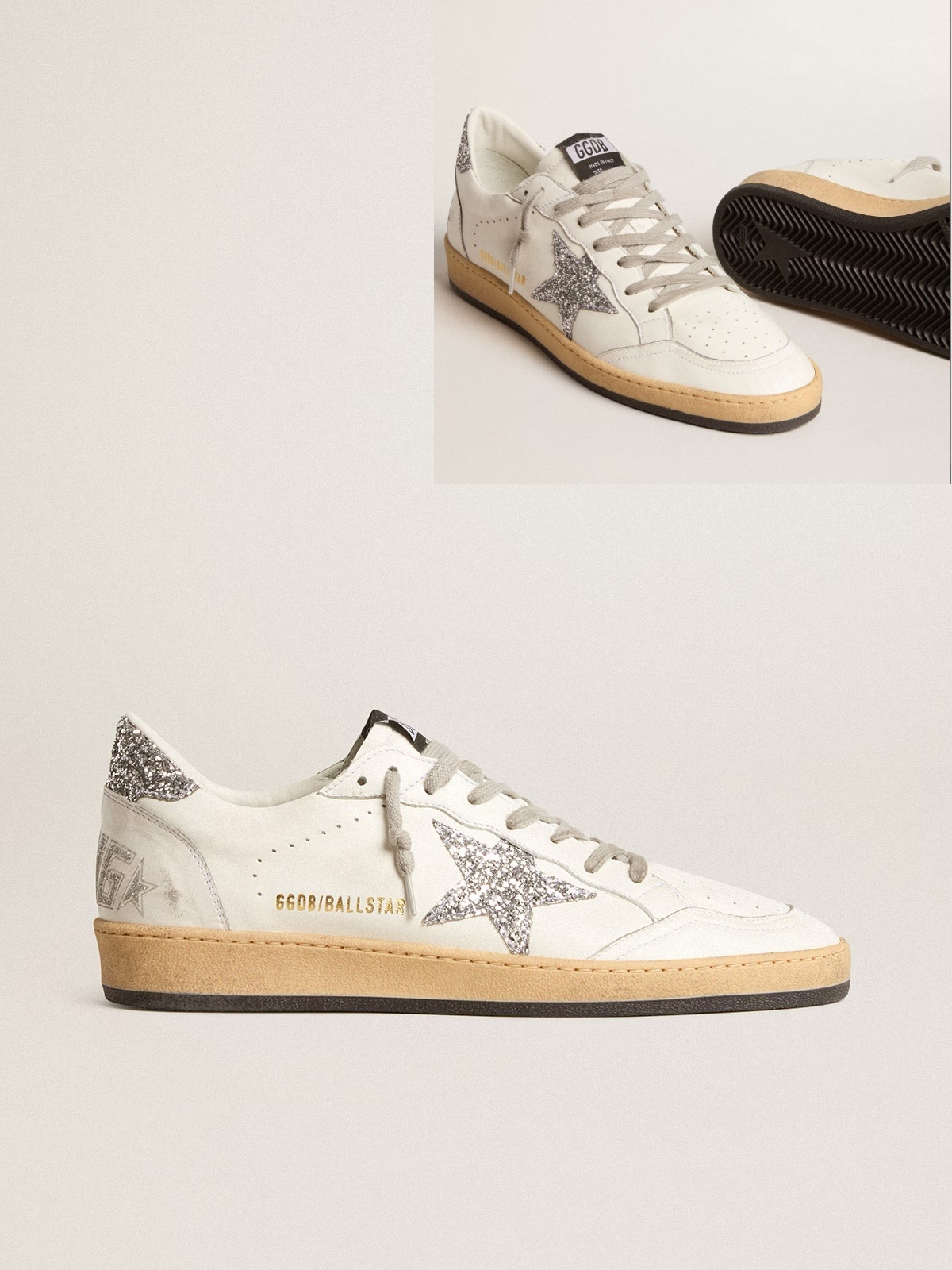 • Golden Goose GGDB Women's Ball Star Wishes in nappa leather with white star and glitter heel tab