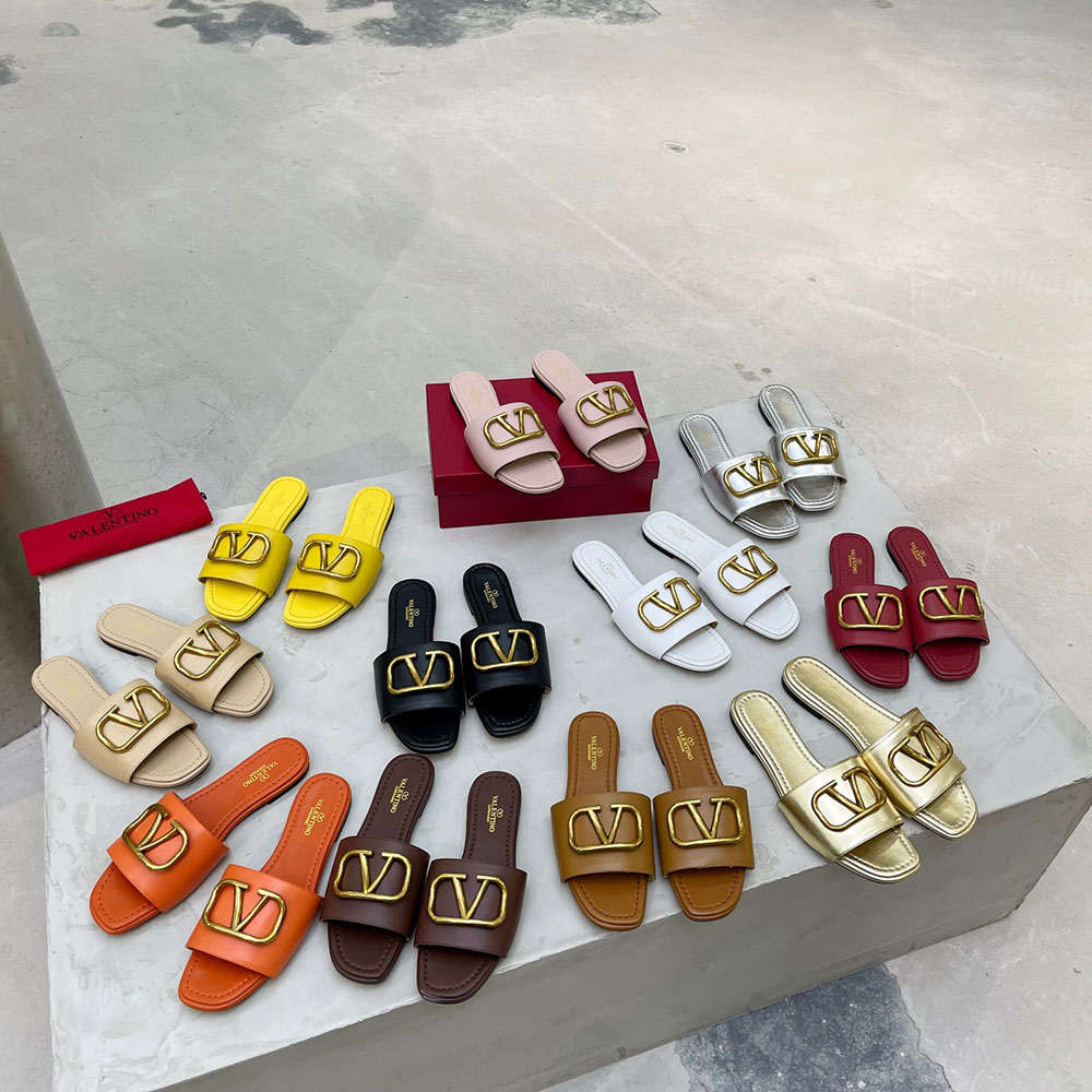 • Valentino Leather Casual Fashion Flip-Flops Slide Sandal(Replica)
